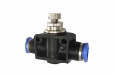 Esse modelo é comumente utilizado em sistemas pneumáticos, para facilitar a conexão de tubos PU, Tecalon, Nylon, entre outros materiais.